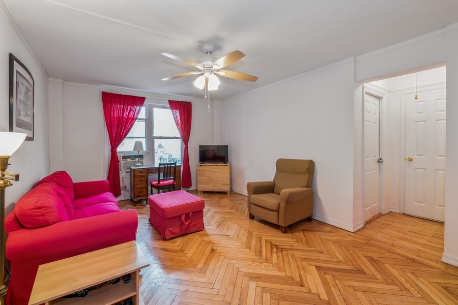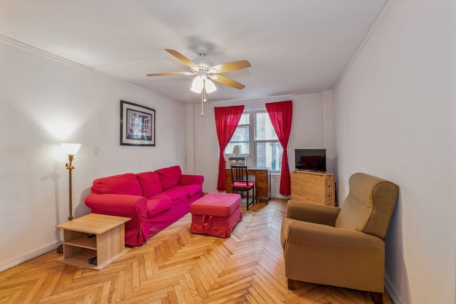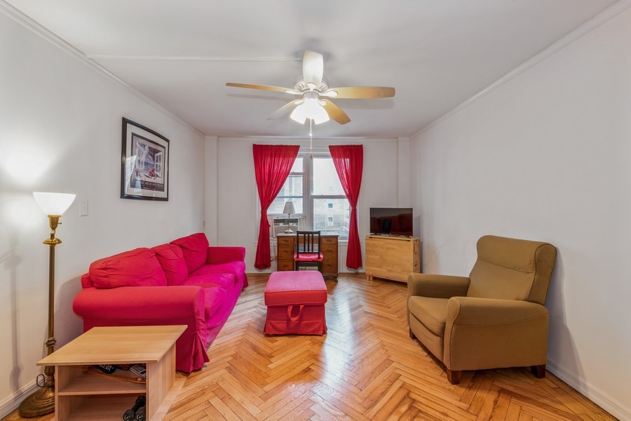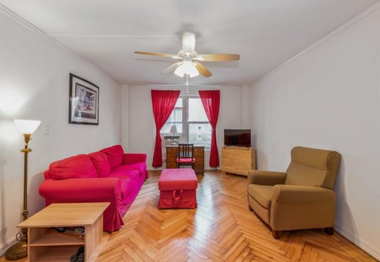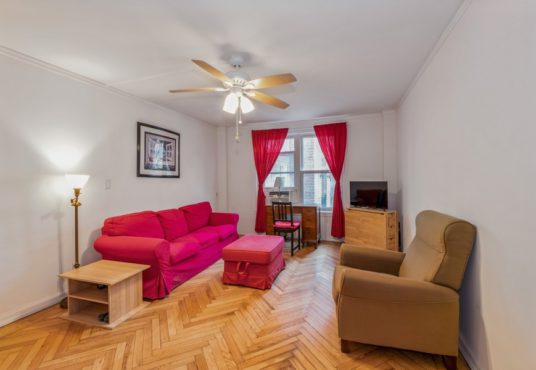 One bedroom apartment approximately 600 ft.², located on the second floor of a well-maintained building in Flagg Court complex. The unit has new wood kitchen cabinets and gorgeous herringbone parquet floors. There is storage in the basement and a beautiful outdoor courtyard. One block from bustling third Avenue with restaurants and food shops galore. Multiple forms of transportation, I train, express bus and ferry to Manhattan. Dog Friendly Building.