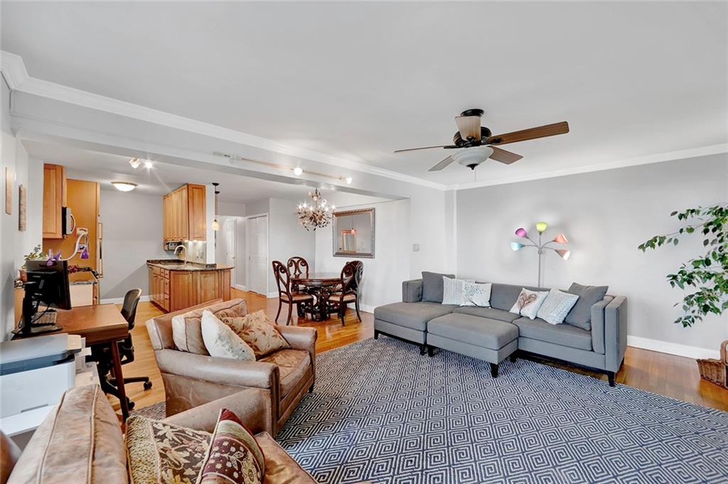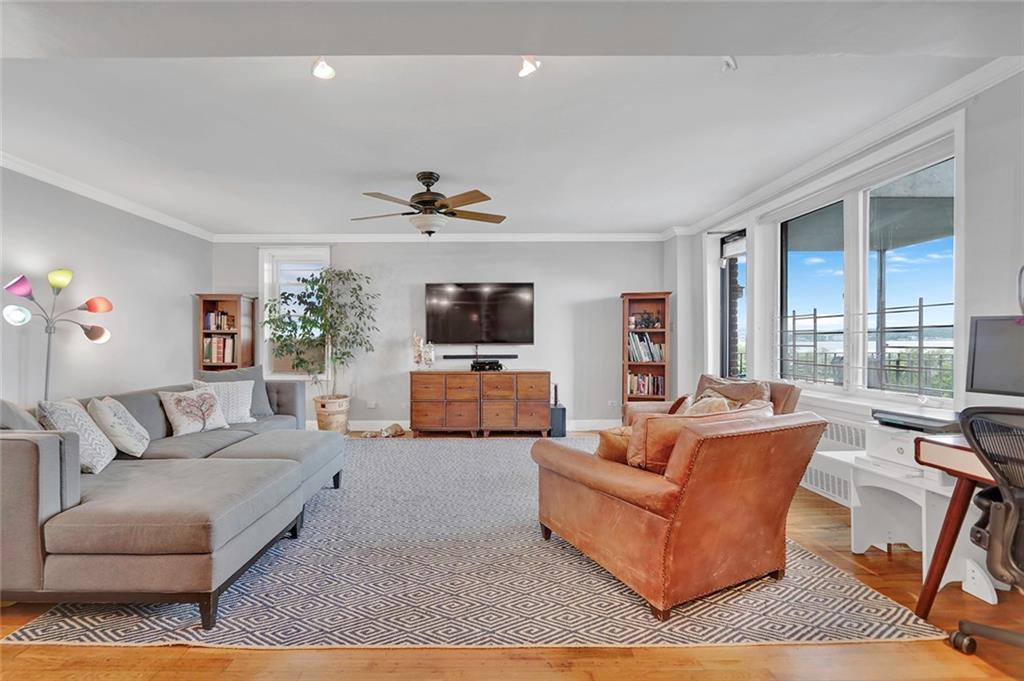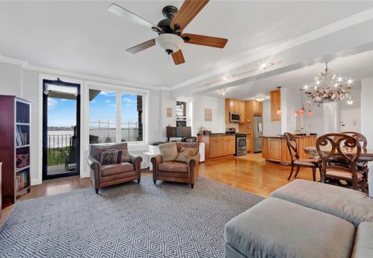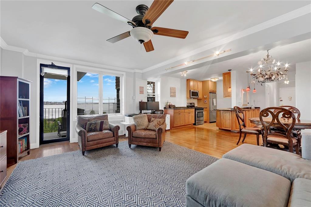 ENJOY THE BREATHTAKING WATER AND VERRAZANO BRIDGE VIEWS FROM THIS EXTRAORDINARY 5TH FL 2 BR/2BA CORNER UNIT WITH TERRACE! As you relax on your terrace, you will be hypnotized by the Sailboats & Cruise Ships passing during the day & wowed by the Stunning Multi-Colored Evening Sunsets. Southwest exposures fill this home with lovely natural sunlight & the apartment‘s sleek modern layout is perfect for entertaining with a kitchen that opens out to the dining area & enormous living space leading out to the terrace. The kitchen features a huge wraparound granite countertop which extends into the entry & there are beautiful maple cabinets, Stainless Appliances & neutral tiled backsplash. The hardwood floors add an elegant touch throughout this unit. The King-sized Master Suite has 3 windows, designer sconces, a huge custom closet & private bath with blue glass tiles, glass enclosed shower, pedestal sink, built-in storage & pocket doors. The windowed Main Bath has a jacuzzi, recessed lighting & features gorgeous Italian tiling, wood vanity with marble countertop & Oval Mirror. The 2nd bedroom has two windows & an incredibly large wall-size custom closet. For additional storage needs there are 3 large closets in the entryway; a double closet for coats & two others that can serve as a utility closet and pantry. Every finishing touch in this apartment has been appointed with great thought and care. Building amenities include a resident superintendent, updated lobby & designated package area, laundry room & Garage with wait list. Small Pets up to 25 lbs. are permitted. The Shore Promenade, Narrows Botanical Gardens, Bike Path & 69th Street Pier are all within several blocks. And for convenience, the NYC Express Bus is right outside the building & NYC Ferry & local buses are nearby. Bay Ridge is well known for its wide variety of restaurants, outdoor cafes, markets, street fairs & outdoor activities. Why not take the opportunity to make this splendid apartment your home?