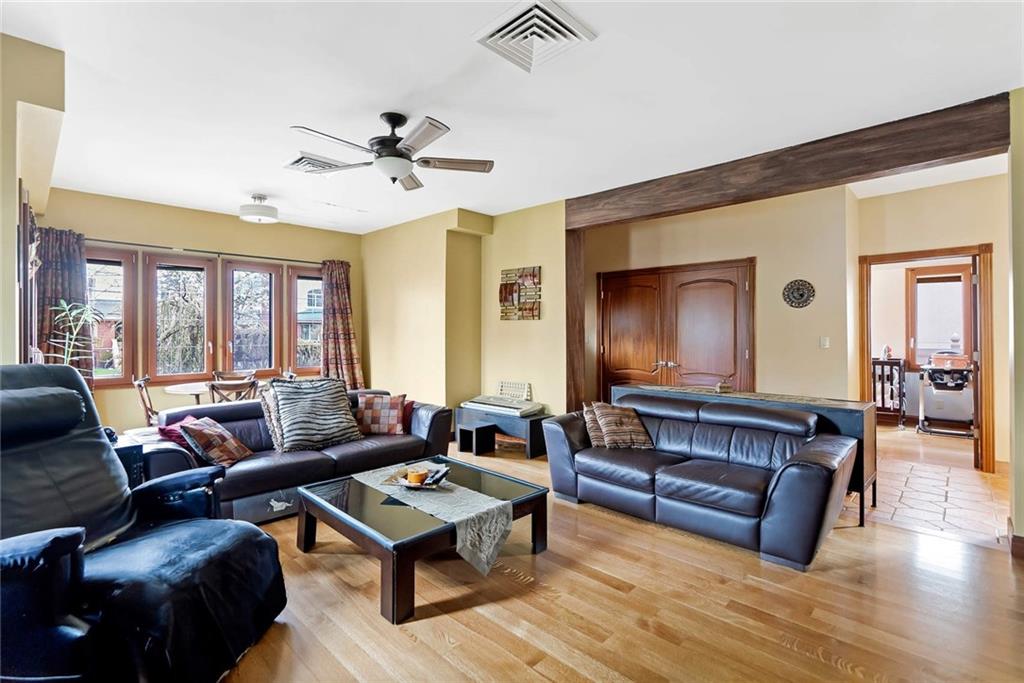 Perched on a commanding and expansive corner lot, this massive five-bedroom, three-and-a-half-bathroom single-family residence offers elegant interiors and stunning outdoor entertaining space in beautiful Bay Ridge. This fully detached home is a true gem in a neighborhood filled with handsome homes. You’ll enjoy plenty of room for entertaining and relaxed daily life inside with spacious living areas and a large chef’s kitchen. Five light-filled bedrooms — including an impressive owner’s suite — offer luxurious accommodations for friends and family. Outside, this spectacular 70-foot by 100-foot corner lot welcomes al fresco dining and lounging on the private back patio surrounded by a tall brick wall with a full outdoor kitchen and brick oven. A full finished basement includes a kitchen, bathroom and guest room. The gated driveway and detached garage provide ample parking. A lovely brick façade, tile roof, covered porch and beautifully manicured landscaping add magnetic curb appeal to this not-to-be-missed Brooklyn residence. Located on a serene tree-lined street in residential Bay Ridge, this home is close to outstanding dining and shopping along 3rd Avenues. Breathtaking waterfront outdoor space and bridge views are just two blocks away. Excellent bus service, the R train, Bay Ridge Ferry Terminal, Belt Parkway, Gowanus Expressway and Verrazano-Narrows Bridge provide easy access to the rest of the city and beyond.