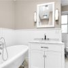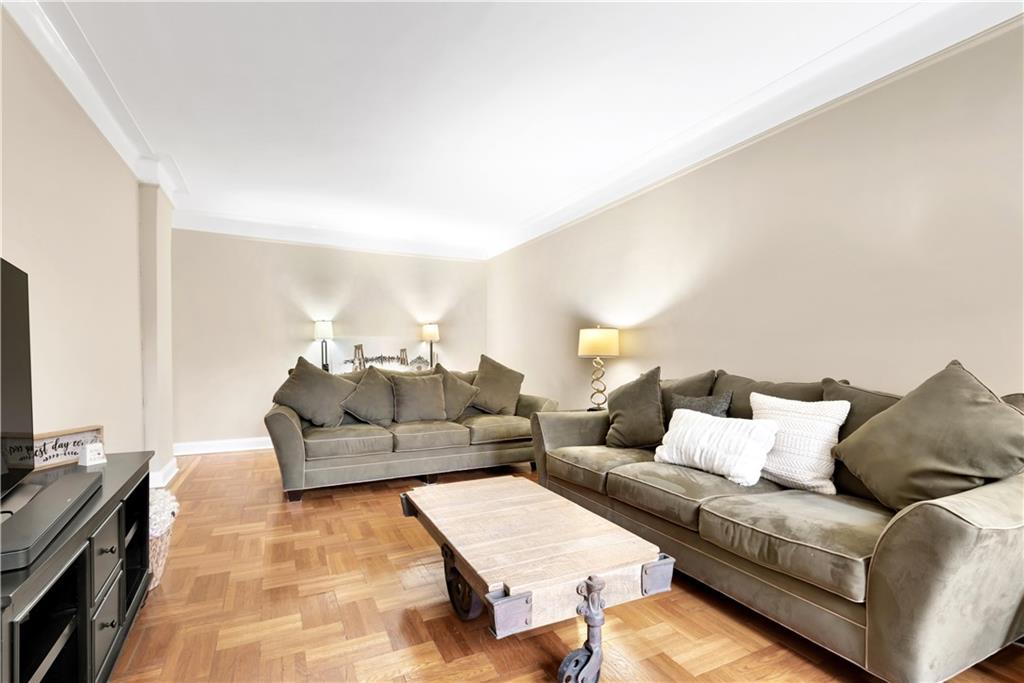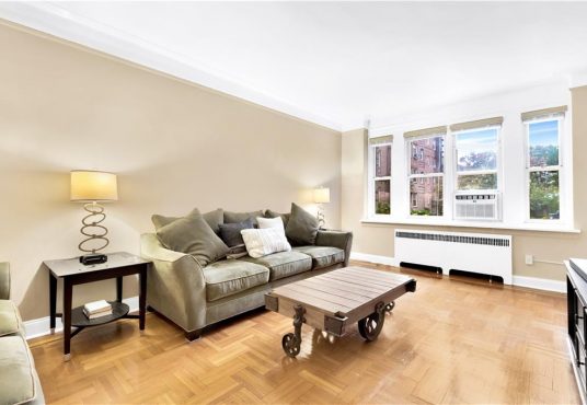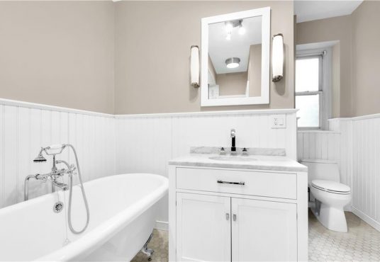 This incredible apartment is highlighted by its sheer size (1,000 sqft+), gorgeous renovated bathroom, pre war charm and nine foot ceilings. Large entry foyer greets you upon entry, with beautiful hardwood floors throughout each room and two deluxe walk in closets for significant storage. Luxurious newly renovated showpiece bath features a new glass stand up shower and separate soaking tub. Windowed eat in kitchen has excellent counter and cabinet space. The king sized bedroom easily fits large furniture and the living room is colossal with 4 windows.